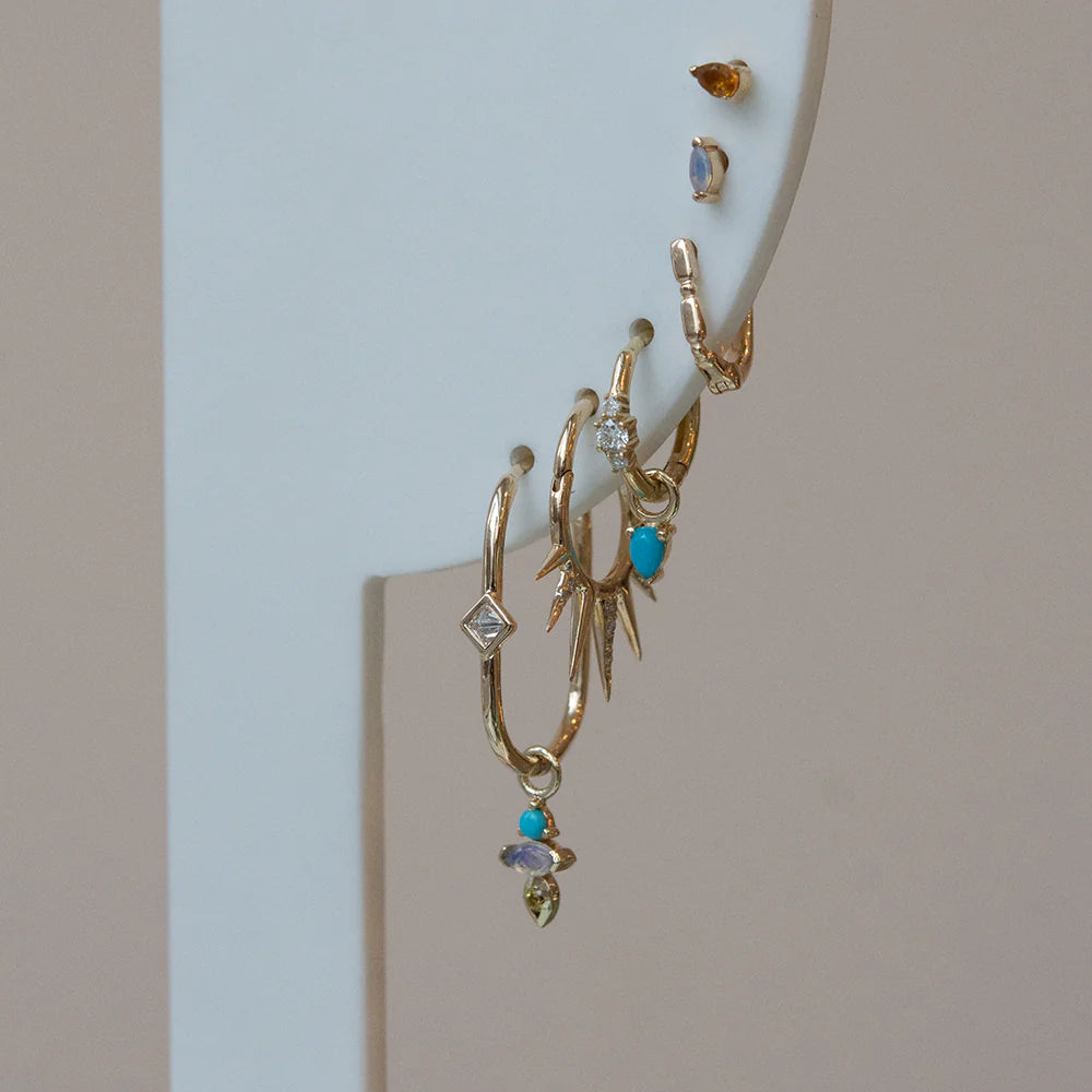These versatile jewels slide onto metier's or other solid gold plaque hoops, and clickers, or can be affixed to chain necklaces and bracelets. A modern take on charms, these elegant plaques can transform your chain, refresh your earrings, and enable interchangeable jewellery styles. Crafted with a choice of birthstone gemstones, diamonds, personalized initials, and mother of pearl, all made in solid gold.