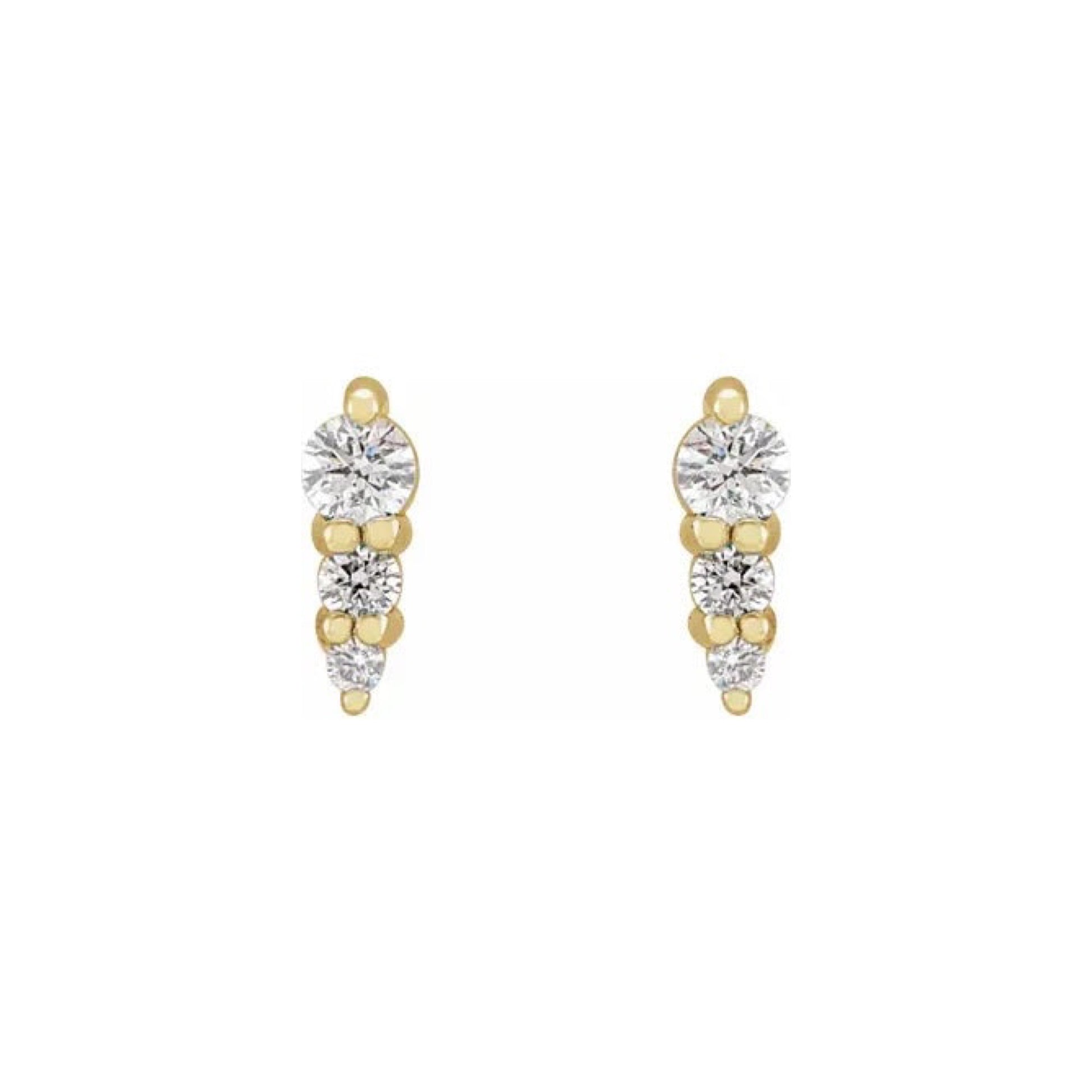 three-stone graduated bar stud earrings - natural diamond