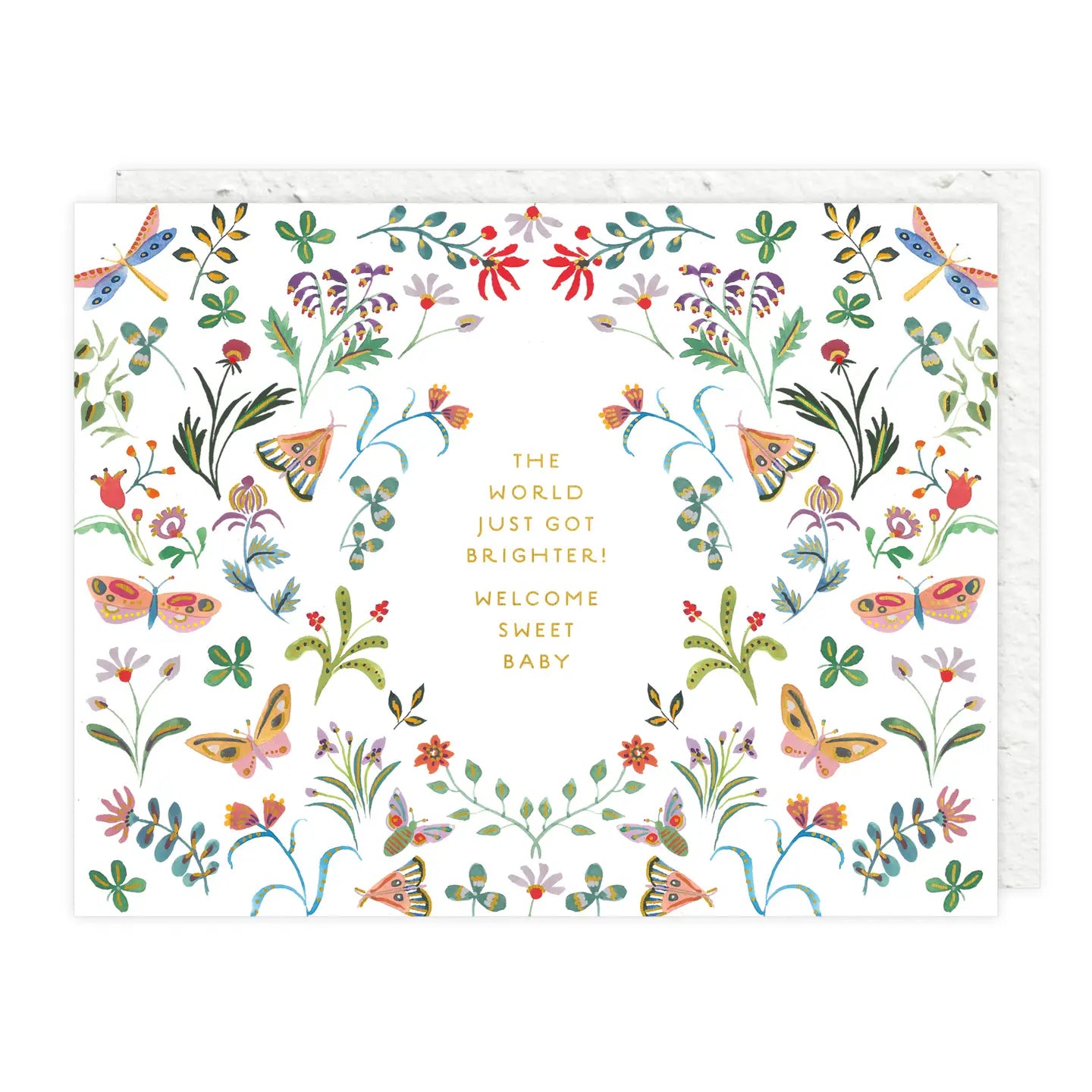 All Seedlings greeting cards have foil details and a PLANTABLE seed paper envelope which is embedded with wildflower seeds. This seed paper is made of a biodegradable eco-paper created with post-consumer materials - no trees harmed for this paper! When planted, the envelopes compost away leaving only flowers behind.