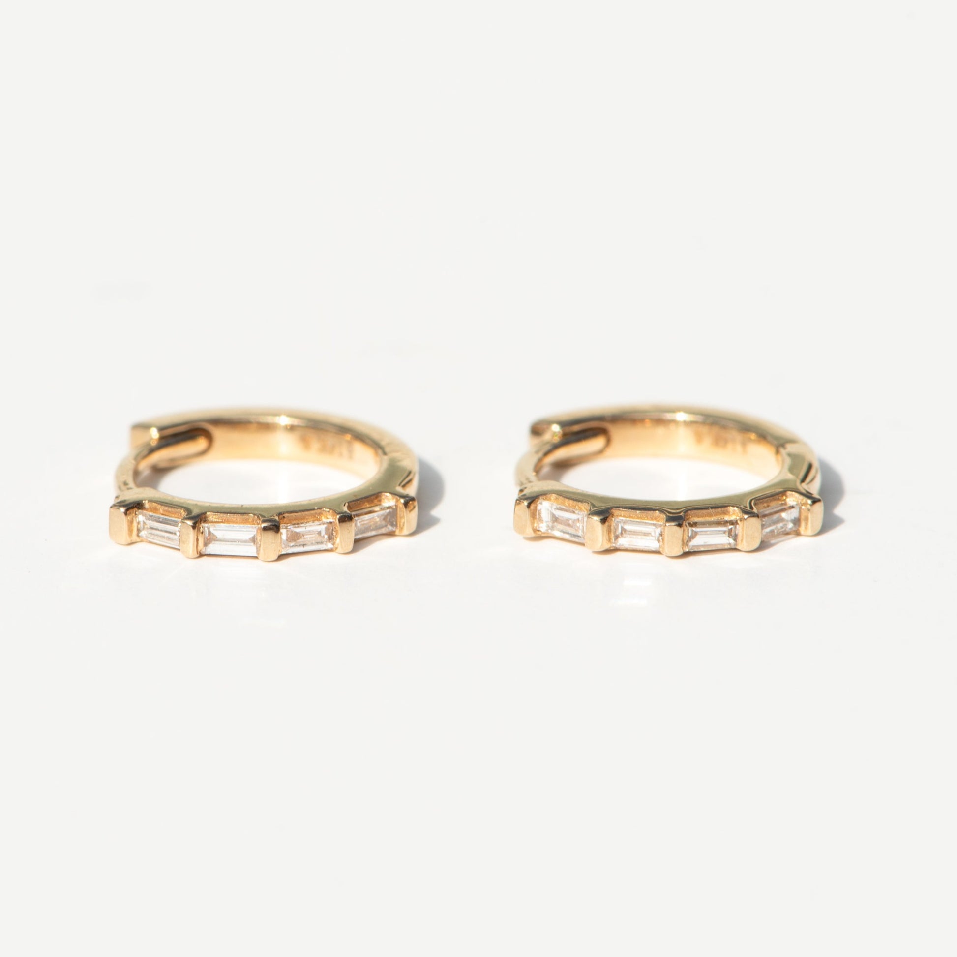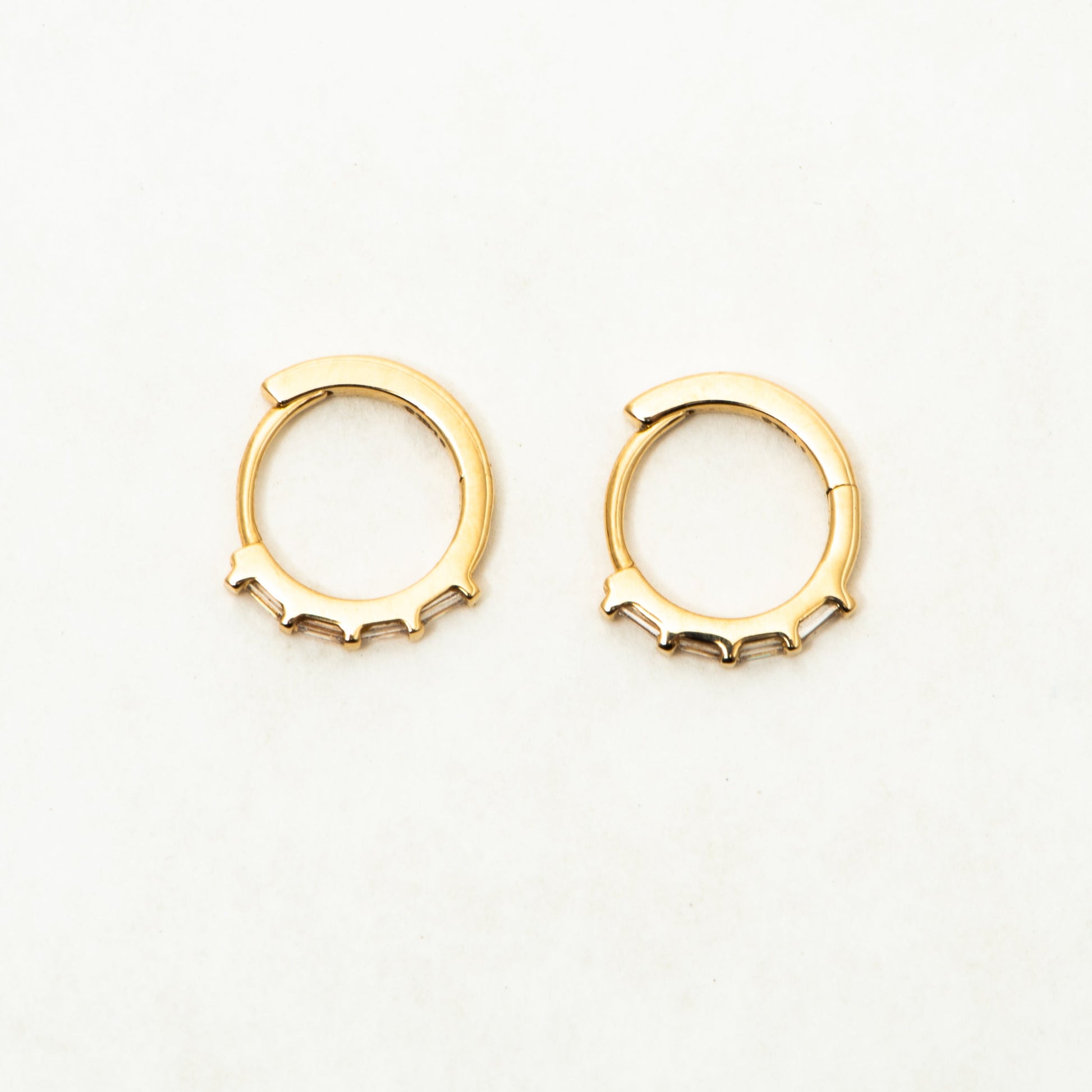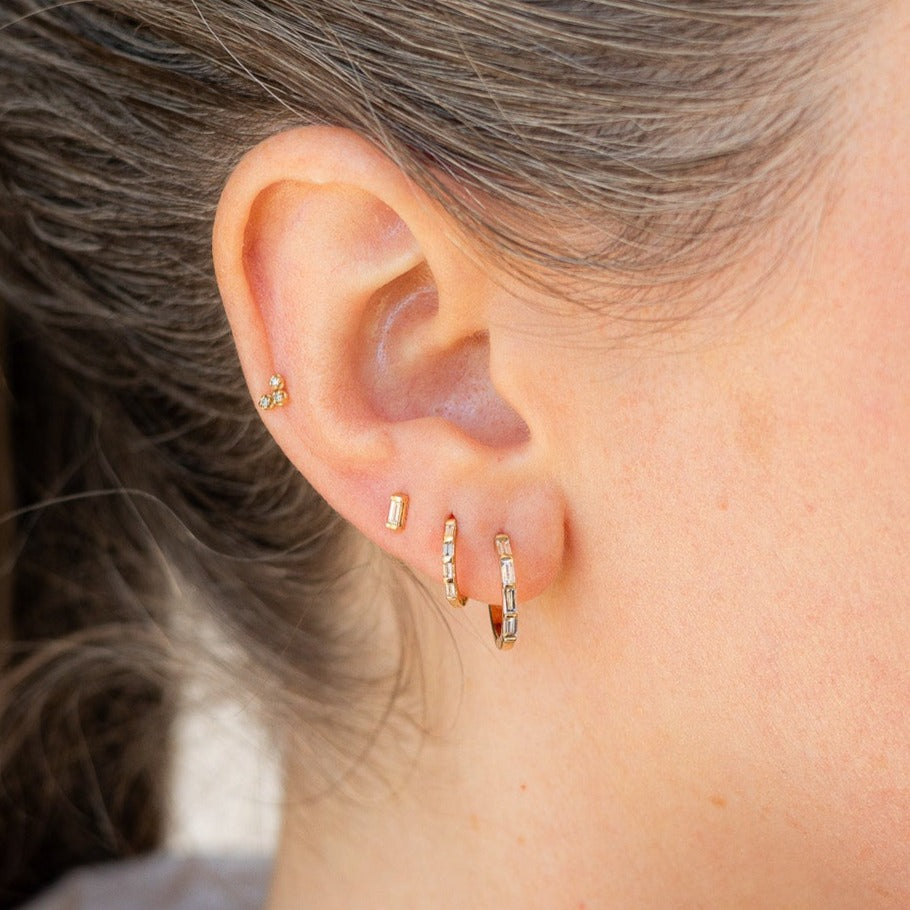 baguette tiny hoop earrings - natural diamond