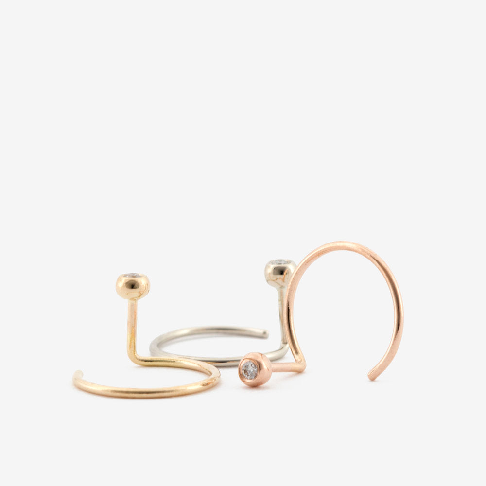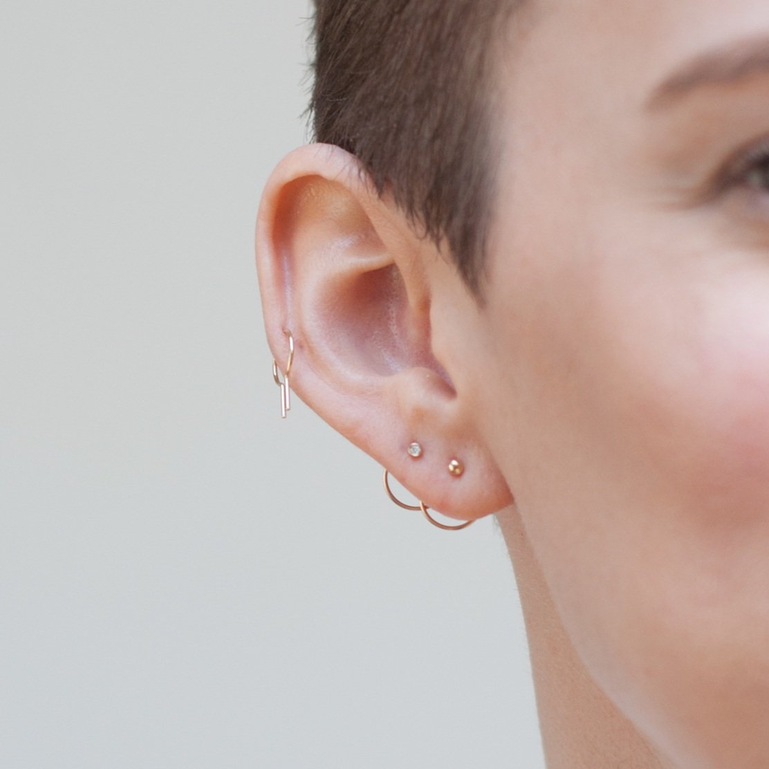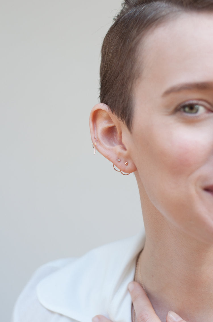 A single stud for your left of right ear. This magnificently simple stud takes the back from a nose ring, eliminating the need for a backing. Perfect for every day, or the often forgotten second and third holes.