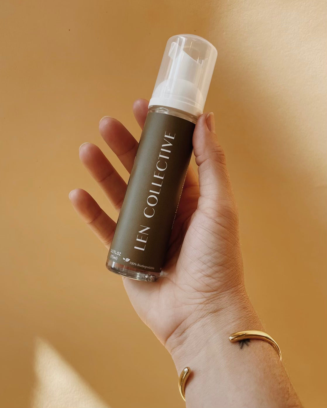 We have partnered with a local company to offer our own signature Len Collective Jewelry Cleaner. Its both non toxic, environmentally safe, and gentle on all materials making it suitalbe for any metal or stone (yes even pearl, mother of pearl, gold fill, or gold vermeil). The foam is a special blend of bio-based surfactants that coalesce in a foam to efficiently break down the daily buildup of grime and allow it to be easy rinsed away leaving nothing but sparkle and shine. The foam is dispensed through a non-aerosol pump foamer, so there are no nasty propellants to damage our ozone layer. Our cleaner is both safe for you, your jewelry, and our planet. From costume jewelry to your heirloom pieces, it will bring back the sparkle and shine without the worry.