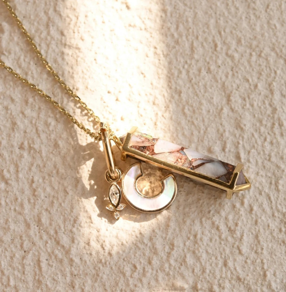 What is a Plaque? These versatile jewels slide onto metier's or other solid gold plaque hoops, and clickers, or can be affixed to chain necklaces and bracelets. A modern take on charms, these elegant plaques can transform your chain, refresh your earrings, and enable interchangeable jewellery styles. Crafted with a choice of birthstone gemstones, diamonds, personalized initials, and mother of pearl, all made in solid gold.