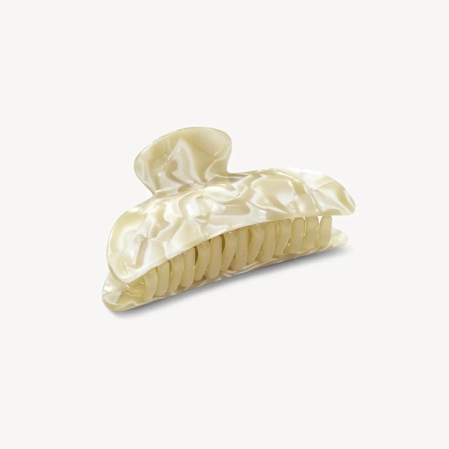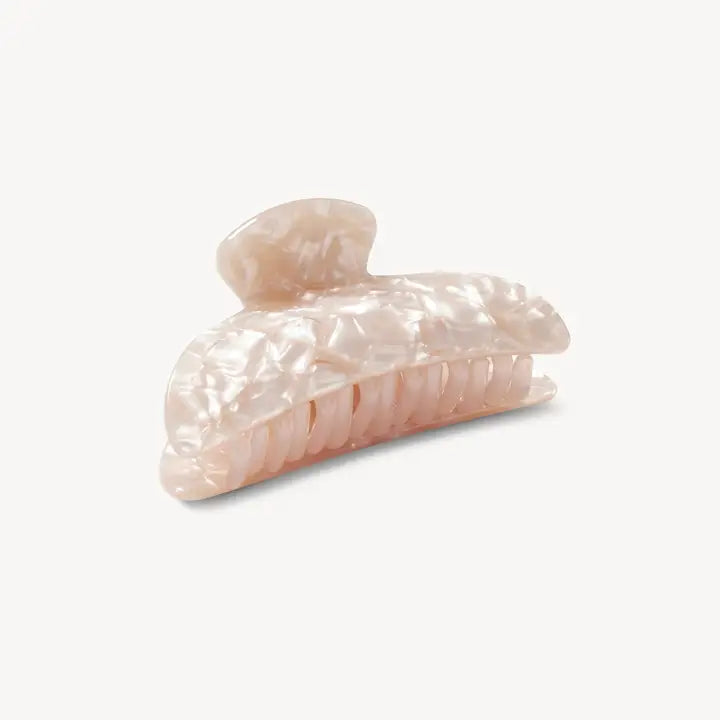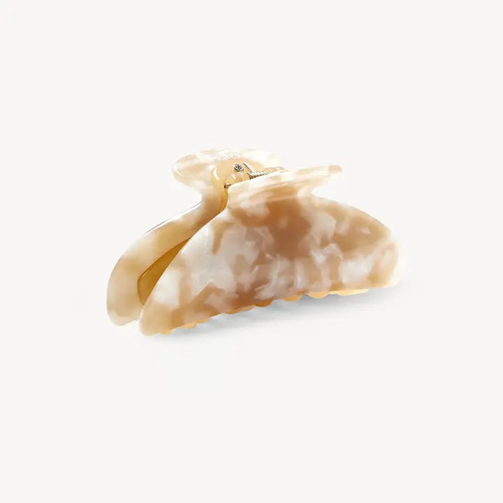 A double-walled hair claw designed to hold medium volumes of hair, handcrafted from Italian acetate with reinforced hardware. Recommended for all hair types and textures. Made to last a lifetime.