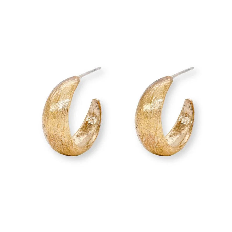 Carved cuff Hoop Earrings with organic texture. Bronze or sterling silver, with sterling silver post.