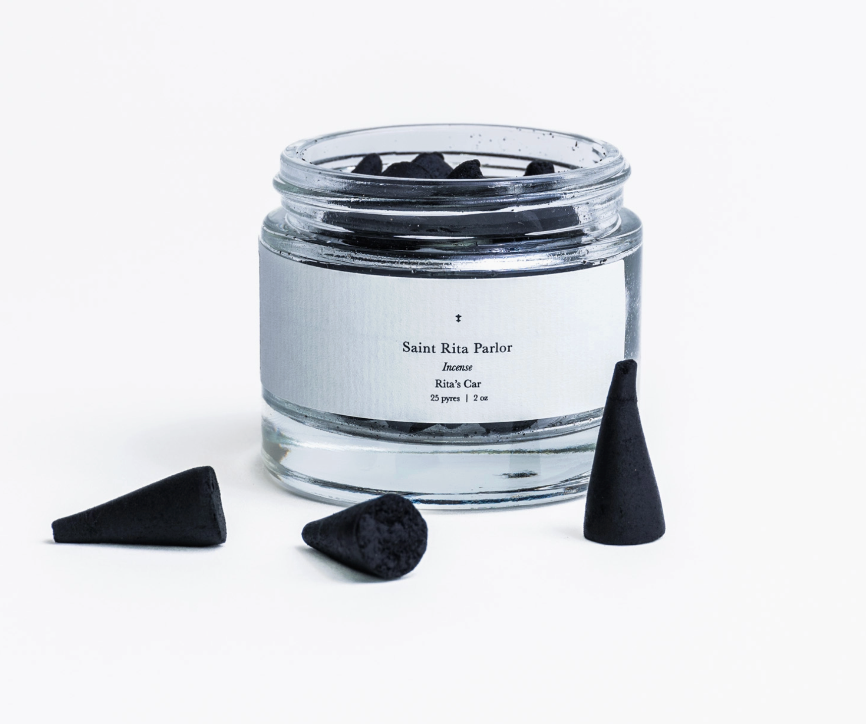 Saint Rita Parlor presents Rita's Car, an incense that embodies the essence of our brand. Each pack includes 25 pyres, each 2oz., designed to fill your space with an enchanting aroma. Derived from a blend of rare and organic essential oils, this fragrance captures the spirit of our founder's late grandmother, Rita. Handmade in Los Angeles, California, our incense is a testament to our dedication to quality and craftsmanship. Enjoy the transformative power of scent with Saint Rita Parlor.