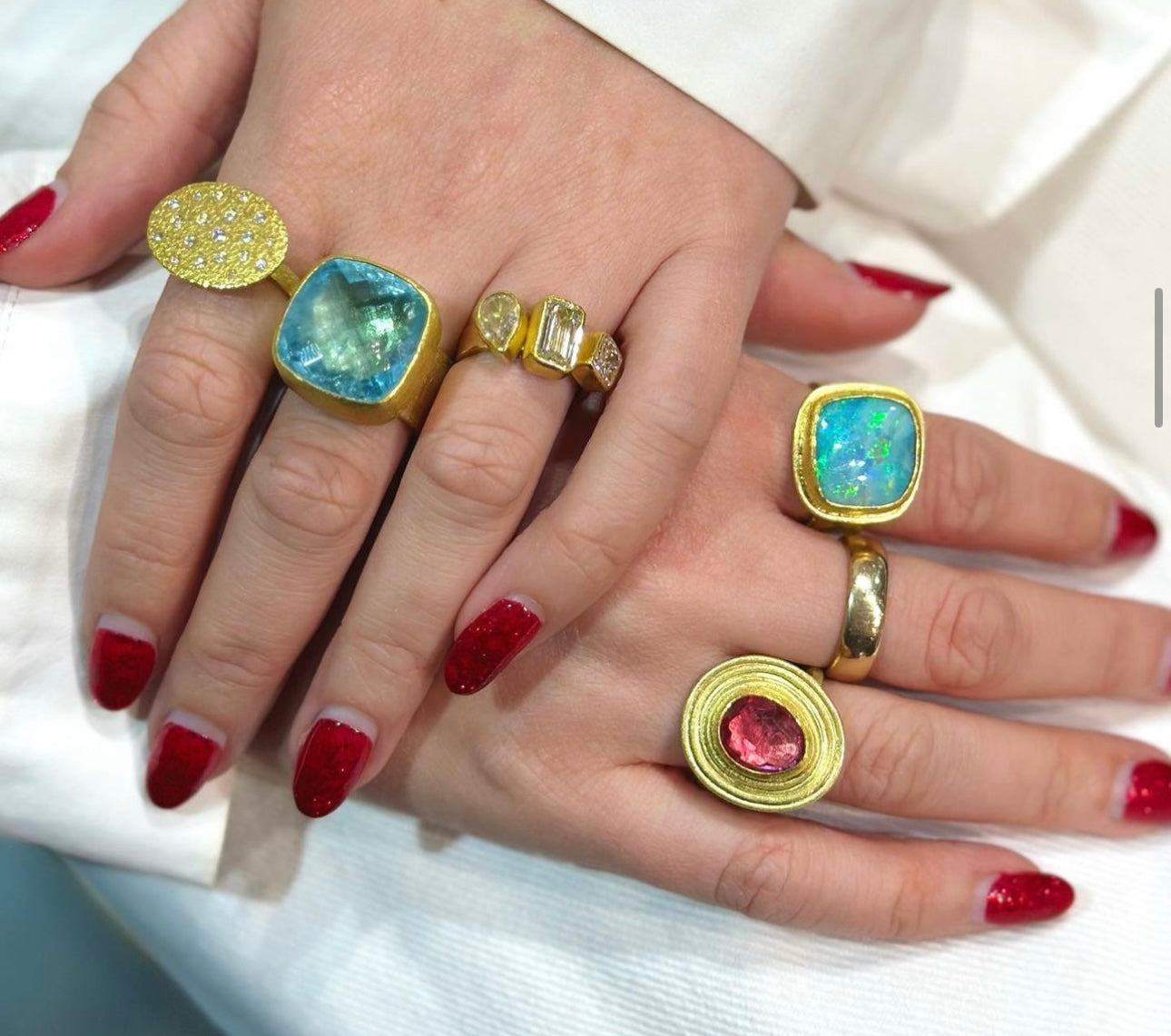 After immigrating from Germany, Petra Class, a classically trained goldsmith, founded a small jewelry design studio in San Francisco. Since then it has grown into an atelier where a small team of gifted metalsmiths create an ever growing collection of sculptural, contemporary jewelry. High karat gold and gemstones are fabricated into wearable works of art.
