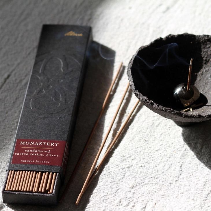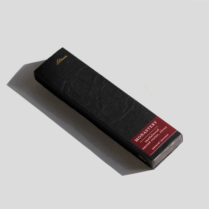 Monastery, pure incense sticks: a high elevation blend of sandalwood, sacred resins and citrus. Evoking the magnetic energy of an ancient monastery, set high in foothills of mysterious, cloud covered mountains. The sacred aroma of high energy Indian Sandalwood is the foundation to this sacred blend. A blend of sacred resins & natural citrus notes lift this peaceful state into higher realms.