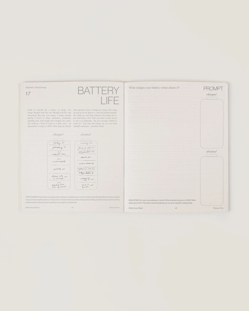 – Each day is guided by a reimagined childhood theme that includes inspiration, an interactive exercise, a journal prompt, and gold star activity to take into your day.