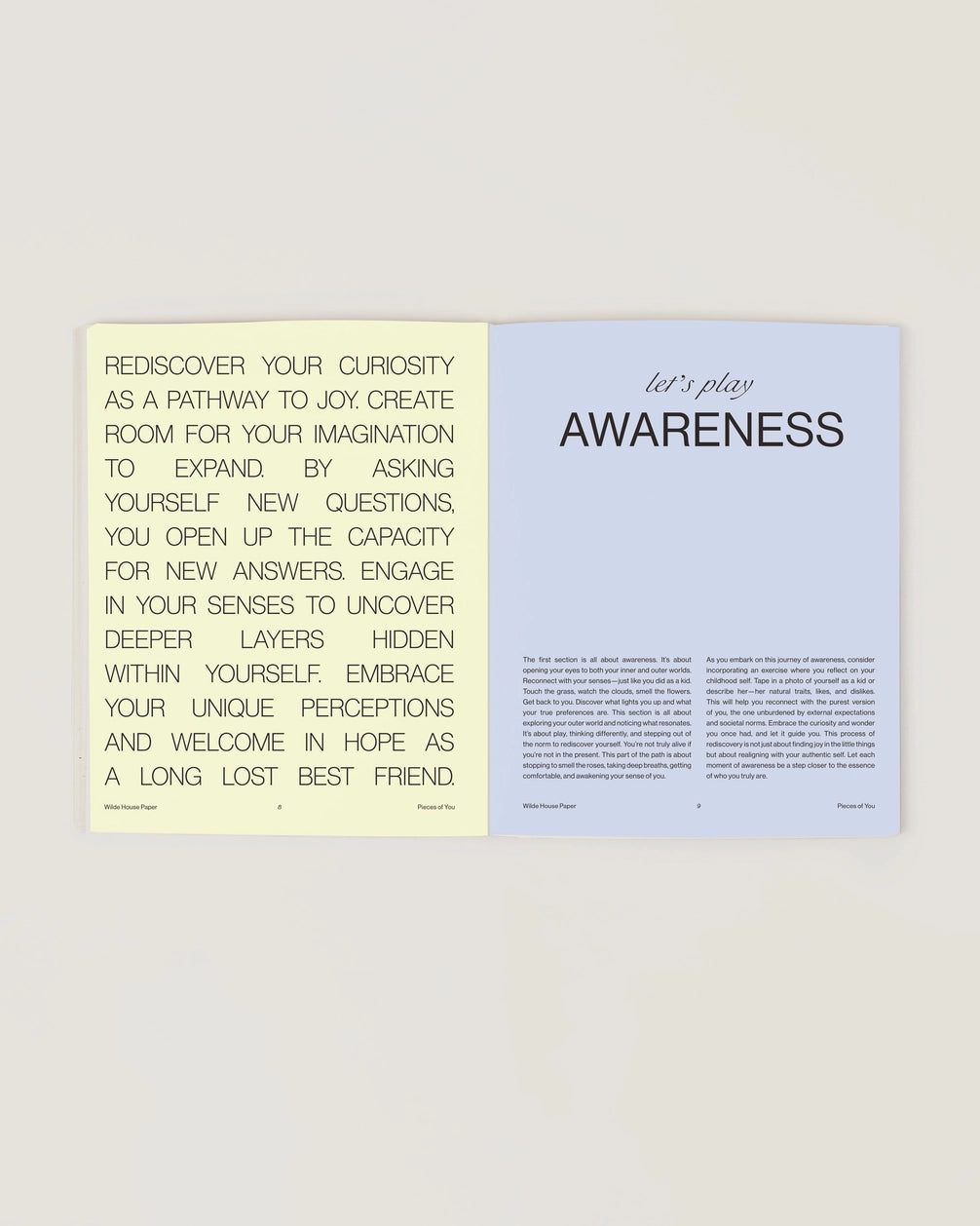 Think back to your childhood, a time when wonder, curiosity, and play were your everyday companions, untouched by the world's influences. The Pieces of You Journal is your invitation to reconnect with that pure, childlike state of mind. Journaling doesn’t have to be intimidating. Approach each day with the same openness you felt as a child, and rediscover the pieces of you that you lost along the way of growing up.
