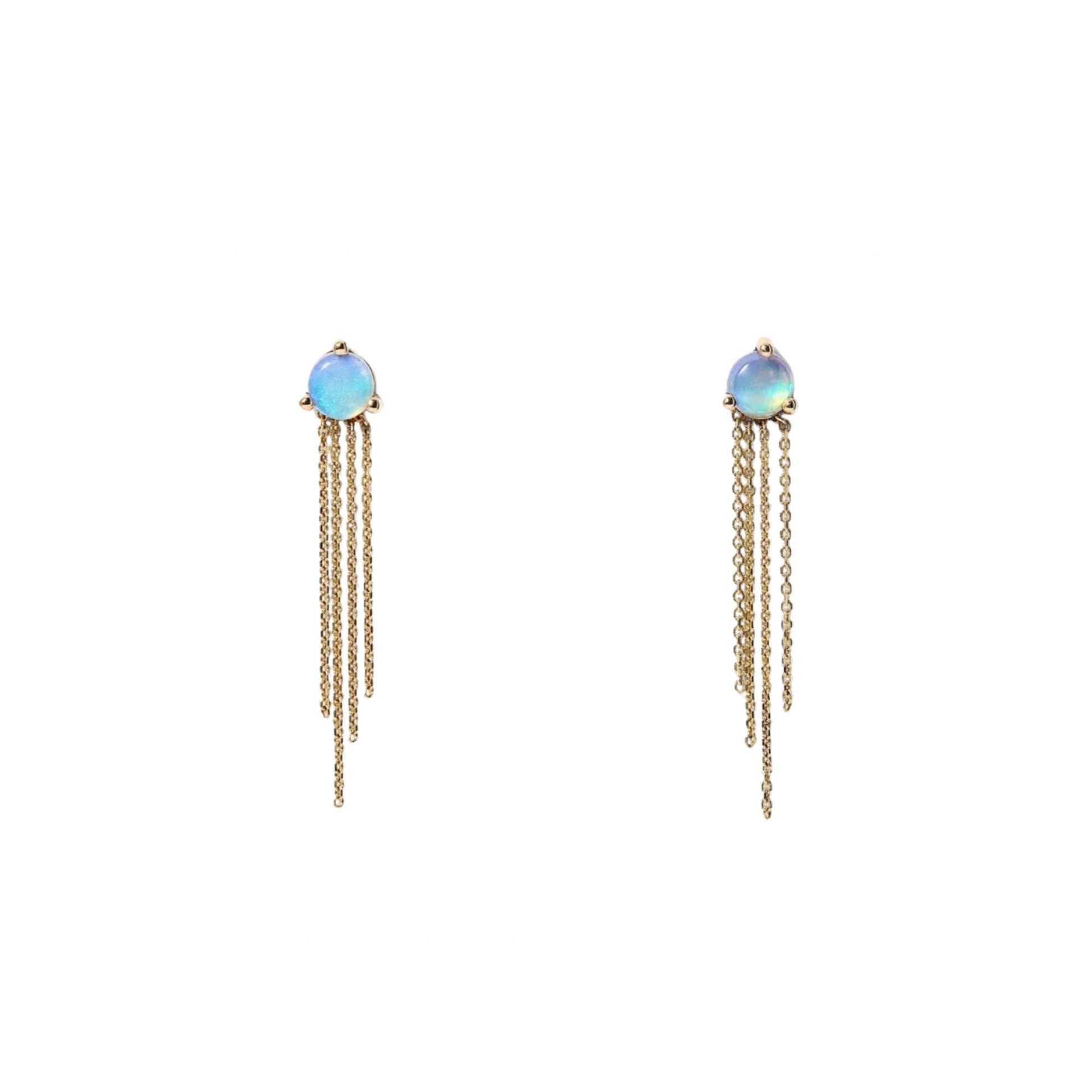 The slightly more dramatic, big sister, earring to the Mist Earring: WWAKE's new Haze earring features a brilliant waterfall of gold chain cascading from a 4mm opal stud. An earring that elegantly catches the light with your every movement. Pair with the Mist Earring in your second hole and watch them dance in the light.