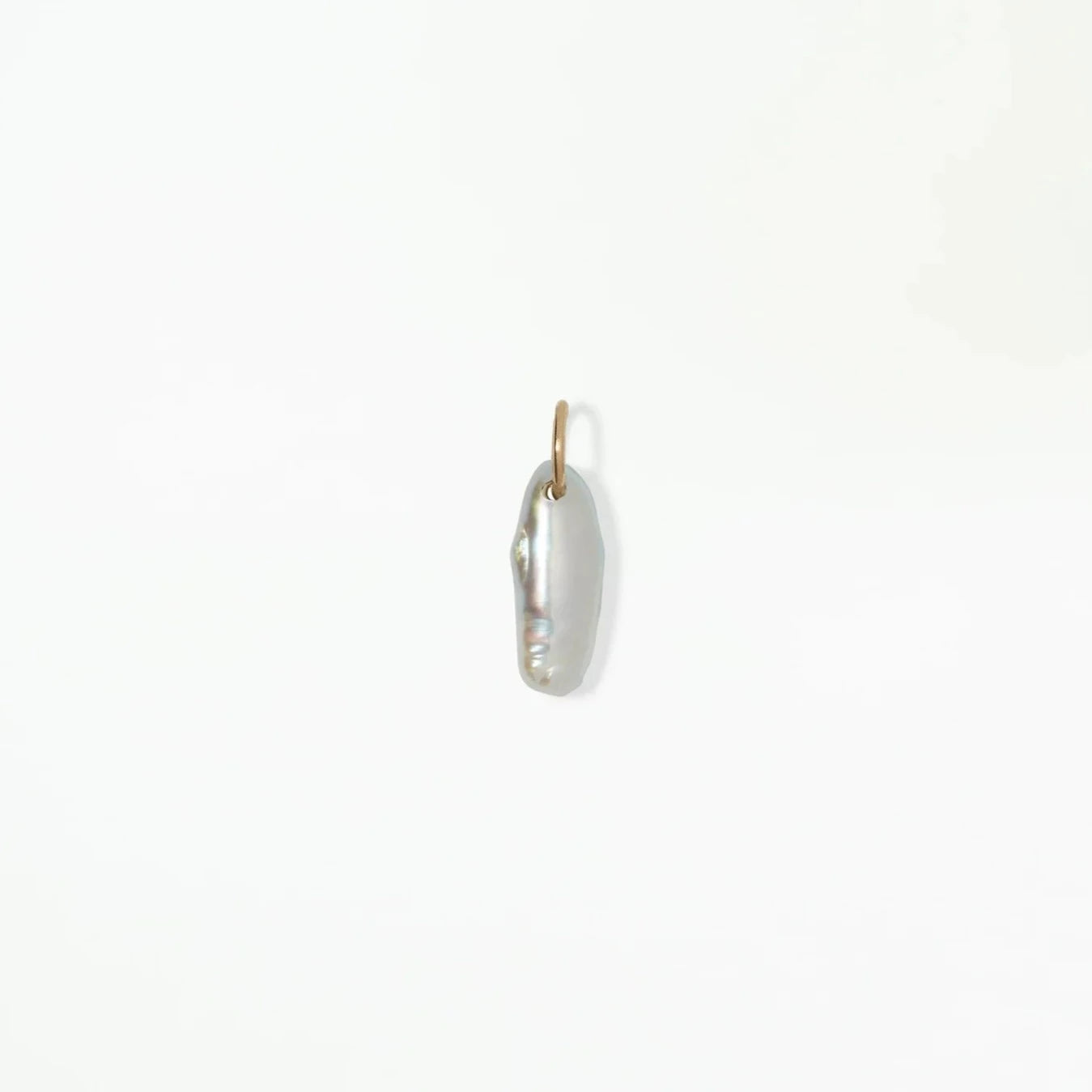 This simple pendant features an elongated sculptural pearl, swinging from a simple gold bail. Wear alone for a simple statement or with others as the perfect layering piece.