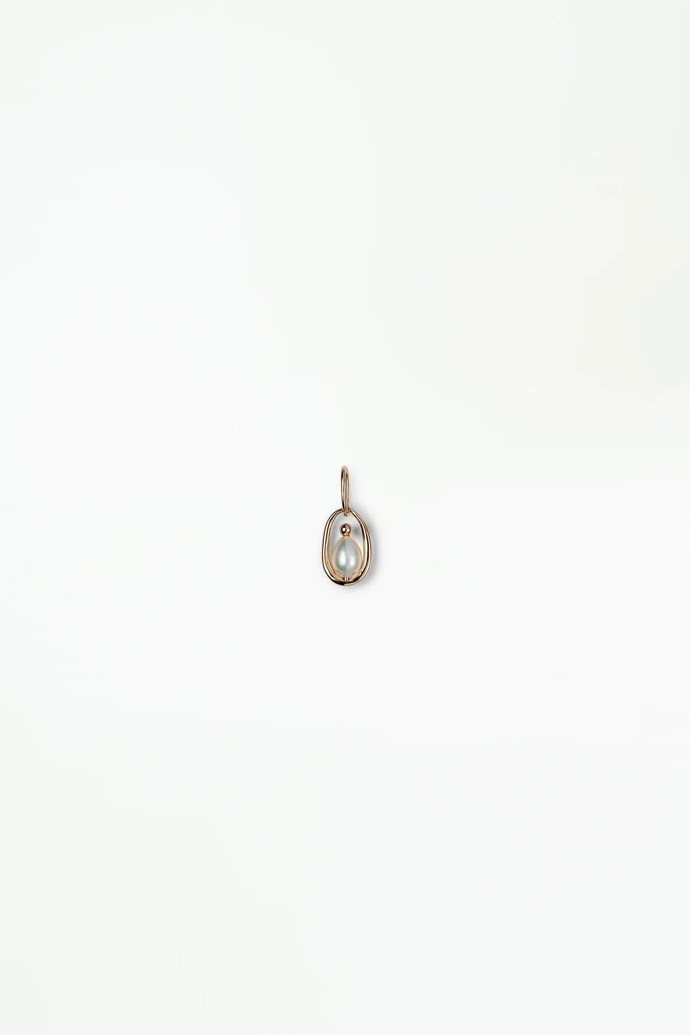 A freshwater seed pearl is silhouetted in gold. Wear alone or layer with other pendants.