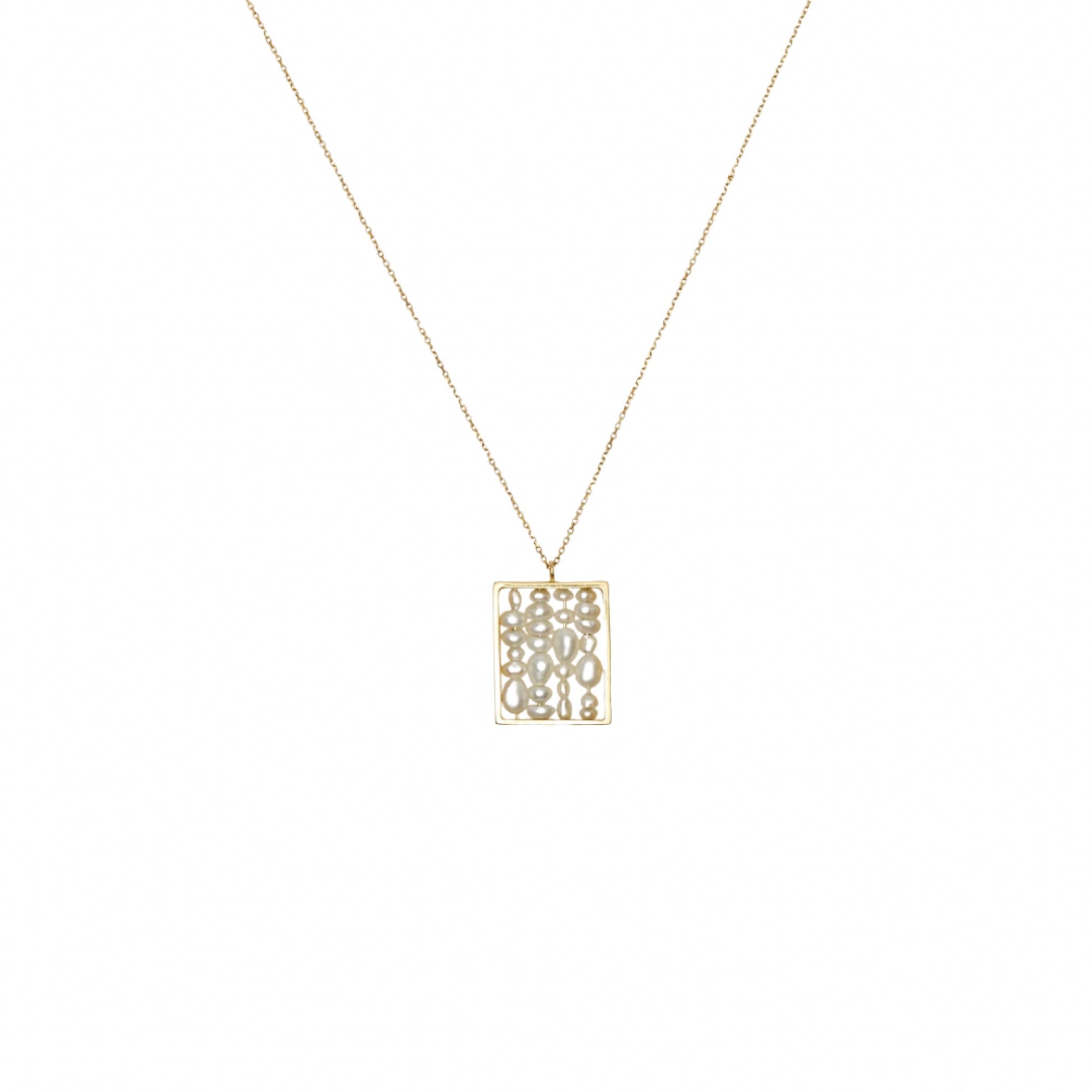 Lines of delicate freshwater pearls in varying sizes evoke a tapestry. Framed in gold and suspended from a sparkling chain, this necklace is equally contemporary and classic.